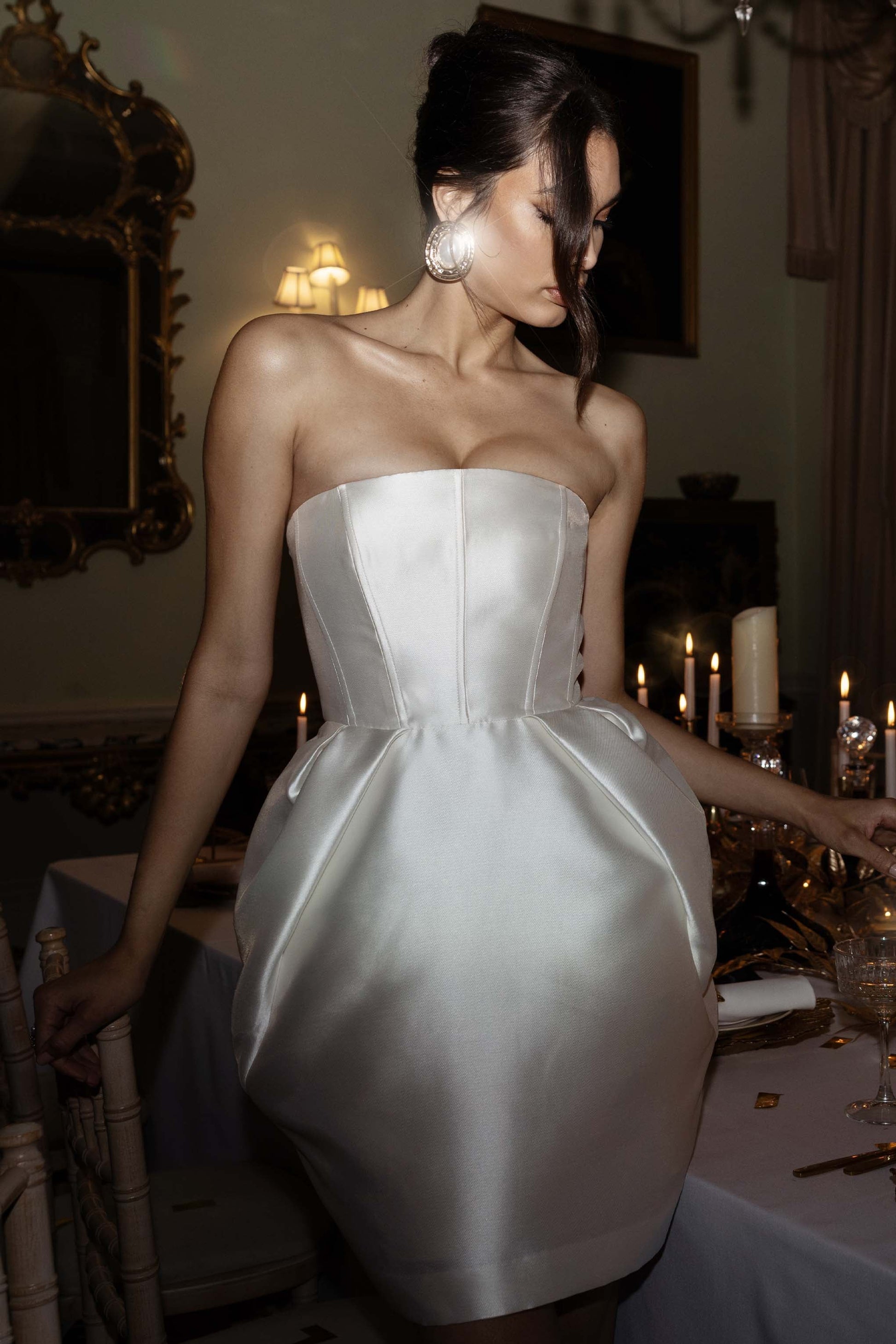 Lovebug | Ivory Bandeau Mini Dress With Tulip Skirt