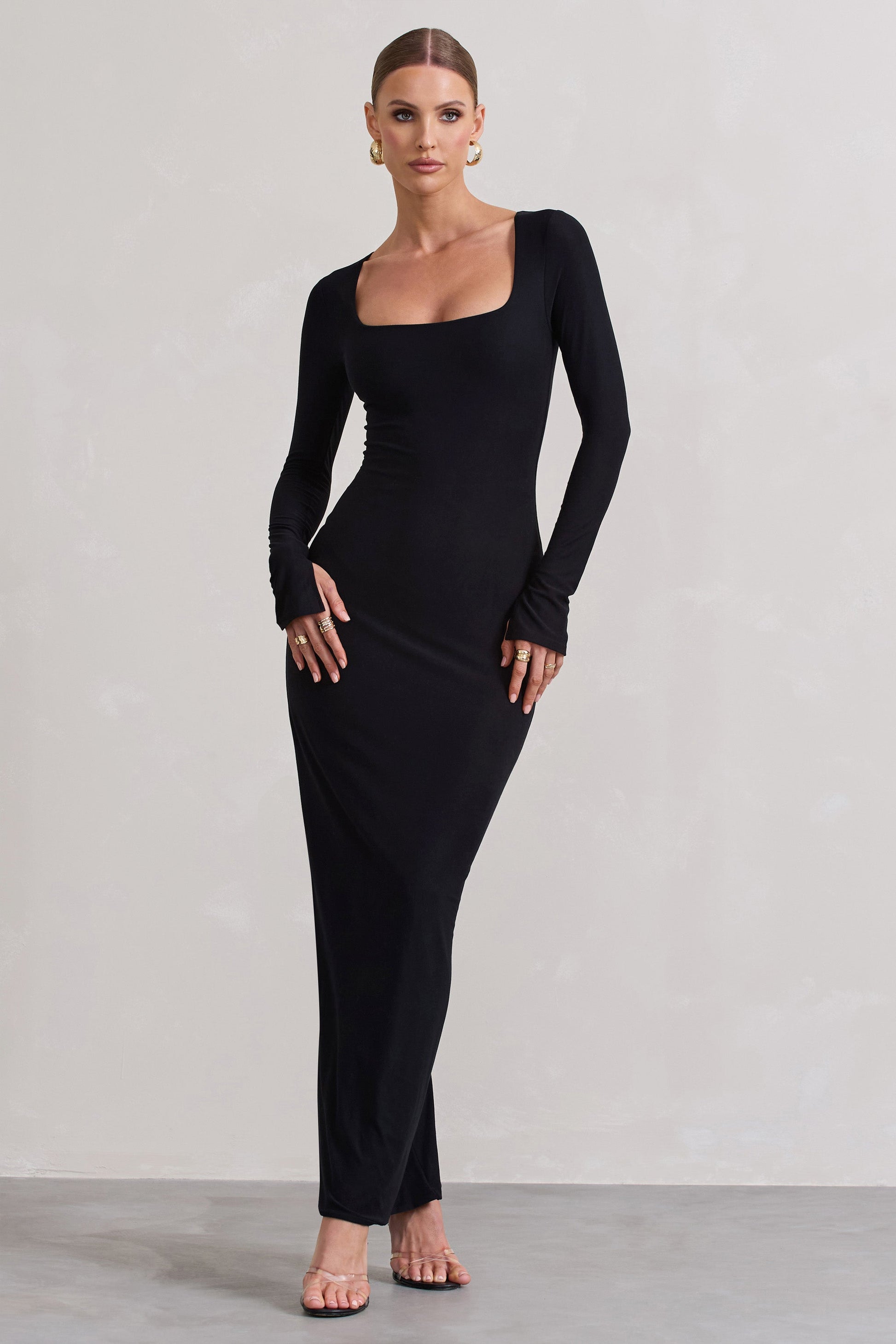 Viva | Black Square-Neck Long-Sleeve Maxi Dress